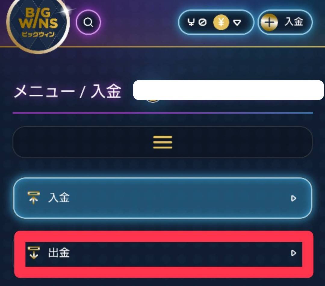 ビッグウィンカジノでもらえる初回入金ボーナスの出金手順を解説します。